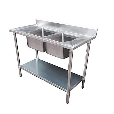 Economic 304 Grade SS Right Double Sink Bench 1500mm width 1500-7-DSBR