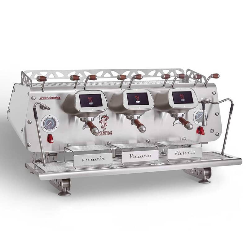 Our Espresso Machines are carefully designed to meet every product's brewing capacity, with a modern and stylish touch—perfect for your kitchen! Main Technical Features: Multi-boiler system. The ultimate production capacity in the right moment: Victoria system is equipped with 3 independent boilers with dedicated On/Off switch: left steam output boiler, right steam and hot water output boiler, and each brew unit has its own coffee boiler, a special program connect the 2 main steam boilers in order to get a non-stop steam generator. TFT display programming. The programming is done through state of the art touch displays, that by a dedicated human interface allows to easily program the machine parameters, using pre-set profiles or giving the maximum customisation opportunity. Patented brewing profile system. Using BEZZERA pressure profile patent is possible to brew drip coffee and herbal infusion with dedicated low pressure programs. The double boiler hydraulic system is drawn by a Volumetric dosage that allows to set pressure profiles from 3 to 11 bar to maximise the coffee extraction experience. Using BEZZERA pressure profile patent is possible to brew drip coffee and herbal infusion with dedicated low pressure programs. Automatic water regeneration. In order to keep ph and water quality under control the automatic regeneration system of Water and Steam boilers allows to schedule a daily recycling. Coffee temperature control. The new coffee extraction temperature control system by PID thermostat, allows an accurate programming of the coffee temperature in the cup, thanks to the hydraulic circuit thermo stability the exaltation of the aromas of each type of coffee is granted. Additional Information: Boiler Capacity: 2x6 + 3x1L Colour: White Warranty: 1 Year Parts Only