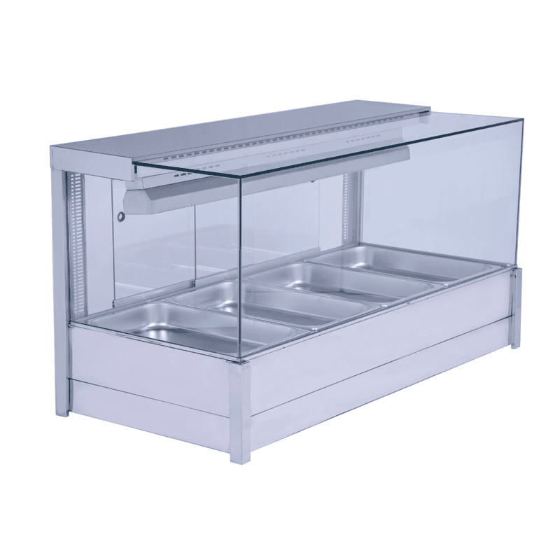 Bonvue Square Countertop Wet and Dry Bain Marie BM14SC Key Features Fits 4x 1/1GN or double row ½ GN pan (Pans not included) Machine can operate as dry and wet bain marie Temperature range: +35 to +85 Pan divider included Can take pan up to 100mm deep Warm White Light with stainless steel light cover and separate switch Enhances food presentation whilst keeping food at correct serving temperature 304 Grade Stainless steel construction with tubular frame Italian heating element Safety lock ball valve drain at the back Analogue temperature control Temperature Reach Indication light Analogue temperature display Max water level line sign in tank Streamlined for easy cleaning Overhead heating lamps Rear tempered 5mm glass sliding door 8mm tempered glass cover Optional trolley also available: please see BMT models Warranty: 2 Years Parts & Labour Plus 2 Years Parts Only Warranty When Products Registered Within 14 Days Of Invoice