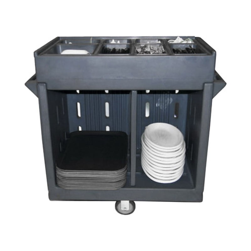 Adjustable Dish Caddie - CPWK300-20 Adjustable compartment post (horizontal or vertical) 150 kg load Handles both sides Single mould injection No assembly required Swivel front castors with brake Made from high quality long-life Food Grade Polyethylene (PE) 12 Months Parts only Warranty