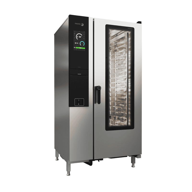 Fast, hot and compact, this oven is built to craft and cook the best recipe for your ultimate satisfaction, featuring a smart cooking process with automatic adjustment! This is a fast selling purchase for any prospective restaurant or café owner who operates a medium to large establishment. Key Features: 10.1’’ glass state of the art touch screen for easy and intuitive operation Options at the end of the cooking process: maintain temperature, repeat cooking process, etc. Ability to modify smart cooking processes in progress and adjust parameters at any time Additional functions (regeneration, sous vide, overnight cooking, fermentation, pasteurisation, smoking, charcuterie and dehydration) 1% regulation capacity Ability to manage your favourite recipes Unlimited 9-stage recipe storage capacity Air and water cool-down (rapid cabinet cooling function) Chamber dehumidification for crispy roasts DeltaT cooking for delicate cooking HACCP data output Note: Pans & Trays not included Additional Information: Gas Type: Natural Gas or LPG Capacity: 20 x 1/1GN (not included) Regulator Size: 3/4†Gas Consumption Rate: 129.6MJ/h iCooking: Smart cooking process with automatic adjustment iClima: Humidity management and control by means of direct measurement with a humidity sensor iWashing: Fully Automatic Washing System with Detergent Tank Fagor Cooking Center: 200 factory preset and culinary tested recipes Multitray - Cooking modes: Low Temperature Steam: 30ºC-98ºC Steam: 99ºC Super Steam: 100ºC-130ºC Mixed 30ºC-300ºC Convection 30ºC-300ºC 2 Years Parts and Labour Warranty
