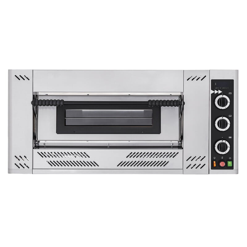 Prisma Food SIngle Deck Gas Pizza&Bakery Ovens PMG-9 Single Deck Gas - 9 × 30cm pizzas The gas oven is made of stainless steel and powder coated steel and it is equipped with: HOT - 400°C SUPERIOR INSULATION TEMPERATURE READ-OUT GERMAN EGO CONTROLS HIGH PERFORMANCE PIZZA DECK OVENS Stone Sole interior Compact Design Sheathed heating elements Internal lighting Viewing Window Rock wool insulation? Exterior: 1305W×1362D×560H; 164kg Interior: 920mmW×920D×150H Natural; 97MJ/h; ¾†gas inlet 2 Years Parts and Labour Warranty