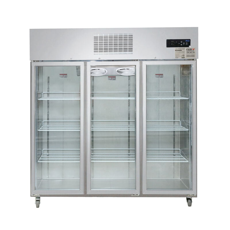 1500 LitreStainless Steel Exterior & Interior*Three doorFreezer • -22 to -18ºCLED Lighting Embraco compressors & German ËBM-Pabst fans Dixell digital temp. controller & read-out 4 levels of shelving plus floor Fan-forced evaporator cooling Auto defrost Self-evaporating drainage Insulation is CFC & HCFC free Extremely efficient self-closing doors with locks Aluminum door frame Internal corners are rounded for hygiene & easy cleaning Ambient 38ºC & 70% RH Lighting inside Triple glazed doors Castors 15 Amp outlet required * gal metal back 2 Years Parts and Labour + 2 Years Parts only Warranty with Product Registration