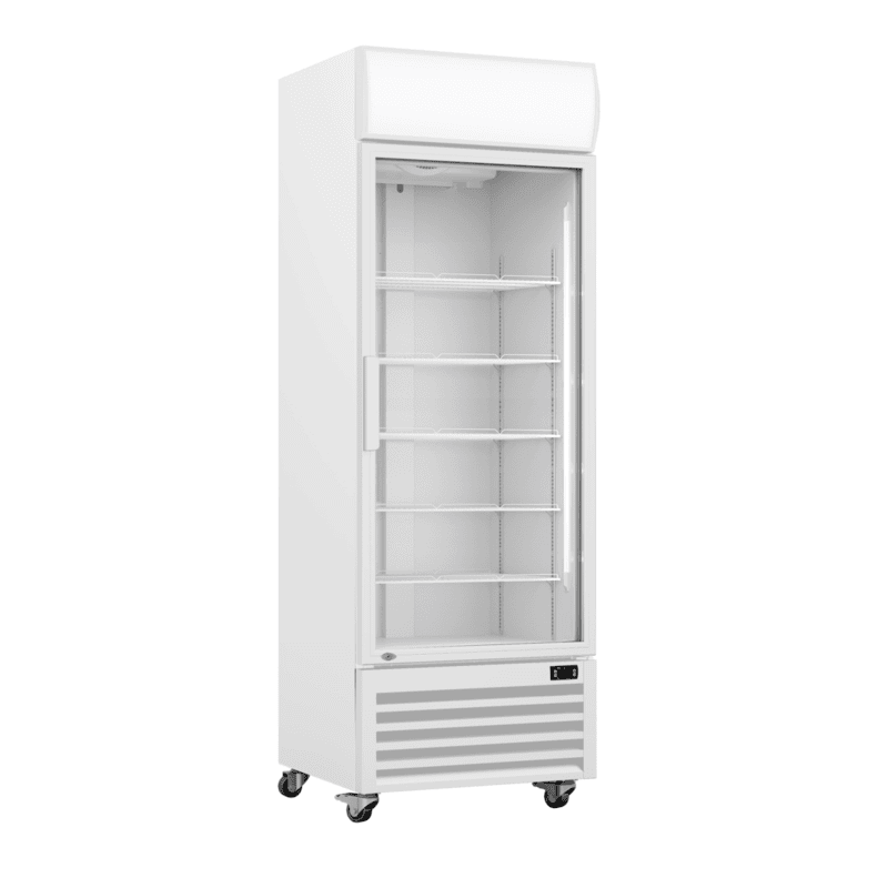 Thermaster Single Glass Door Colourbond Upright Drink Fridge White LG-540P Highlight your bestselling beverages with our Thermaster Beverage Display! Made up of LED lighting for advertising—they’re sure to display your products well and showcase them to your buyers sleek, clean and fresh. The stylish drink fridge is one of our premier single upright fridge units that cools and freezes your stock and ingredients. It can maintain the perfect temperature for your frozen food or ice-cold drinks. This slim fridge Is a special fit for any restaurant, café, supermarket, takeaway store or bar needing a visually striking unit with easy, quick access. Aside from its fashionable look, this masterpiece comes made with an illuminated canopy, self-closing door, a white powder coated steel plate, automatic defrost and heavy-duty castors—a powerful compact fridge that slots well within any kitchen, workspace, or backroom. Key Features: Fashionable Design With Led Lighting CFC-Free Insulation & Refrigerant Low-Energy Consumption High Cooling Efficiency Illuminated Canopy Vertical Fluorescent Lamp Easy Adjustable Shelves Self-Closing Glass Door External Door Handle 2 Layer Tempered Door Glass White Powder Coated Steel Plate Automatic Defrost And Condensate Evaporation Heavy Duty Castors With Brake Lock & Key Additional Information: Refrigerant: R290 Natural Refrigerant GEMS Star Rating: 9 Capacity: 530L Temperature Range:2°C to 8°C Ambient Temperature:38ºC / 50% RH 2 Years Parts and Labour + 2 Years Parts only Warranty with Product Registration within 14 Days of Invoice