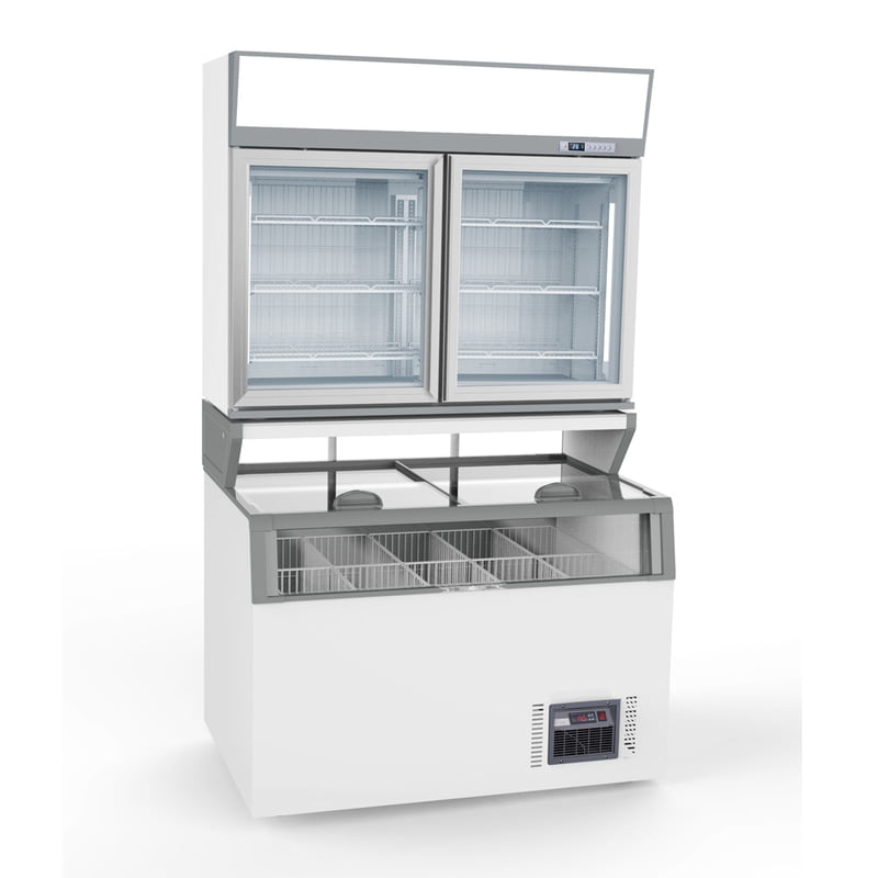 Thermaster Supermarket Combined Freezer ZCDTD125 Generate more sales with an aesthetic and beautiful display! Catch every customer’s eye with your fresh-kept products showcased in a sleek and modern supermarket combined freezer brought to us from the catering giant, Thermaster. This masterpiece comes with a quick and easy installation, and is very easy to operate. It is designed to reduce floor footprints and is a big space saver for your store! It comes with Led lighting and auto-defrost function, as well as an electronic digital temperature control/display Key Features: R290 natural refrigerant Reduce floor footprint Easy to operate Electronic digital temperature control / display Quick and easy installation Boost product display advertising Streamlined operation LED lighting Auto-Defrost This unit comes in two separate packages Installation and Assembly are not covered Top Freezer: Stainless steel inner bottom Easy to maintain Illuminated top canopy for advertising Triple glazed self-closing glass door with heat film Hinged self closing doors Fan cooling Bottom Freezer: Low-E, tempered glass Sliding doors Equipped with storage mesh or full baskets Adjustable feet Static cooling system with auto defrost Optional manual defrosting models available on request. Ideal for ice cream storage 2 Years Parts and Labour + 2 Years Parts only Warranty with Product Registration within 14 Days of Invoice