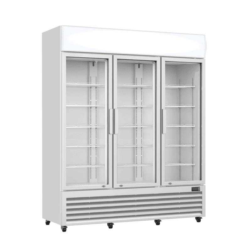 Thermaster Three Glass Door Colourbond Upright Drink Fridge LG-1203P Highlight your bestselling beverages with our Thermaster Beverage Display! Made up of LED lighting for advertising—they’re sure to display your products well and showcase them to your buyers sleek, clean and fresh. This large upright fridge from Temperature Thermaster is suitable for any hospitality establishment stocking large quantities of stock, particularly in restaurants and supermarkets. It’s a powerful display fridge which comes with a prominent decorative white colour, with a large 1200 litre space for storage that aims to keep your ingredients cool and refreshed. It features five levels of strong shelving, interior LED lighting, powerful embraco compressors, digital temperature control, fan-forced evaporator cooling, self-evaporating drainage and double-glazed doors for extra toughness and optimal viewing. This fridge has almost double the power of Thermaster’s other fridges in this series, so if you’re looking for a premium fridge for your business – this is the one for you. Key Features: Fashionable design with LED Lighting CFC-free insulation & refrigerant Low-energy consumption High cooling efficiency Illuminated canopy Vertical fluorescent lamp Easy adjustable shelves Self-closing glass door External door handle 2 layer tempered door glass White powder coated steel plate Automatic defrost and condensate evaporation Heavy duty castors with brake ( 4pcs, 2 with stopper) Lock & key Digital Temperature controller Additional Information: Refrigerant: R290 Natural Refrigerant GEMS Star Rating: 5 Shelves: 12 Capacity: 1065L Temperature Range:2°C to 8°C Ambient Temperature:38ºC / 50% RH 2 Years Parts and Labour + 2 Years Parts only Warranty with Product Registration within 14 Days of Invoice