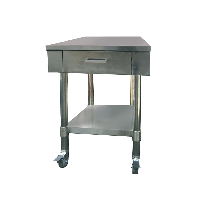 Work bench with 1 Drawer and UndershelfALL STAINLESS STEEL• 775mm depth • 1 x drawer• Solid undershelf 2 Years Parts only Warranty